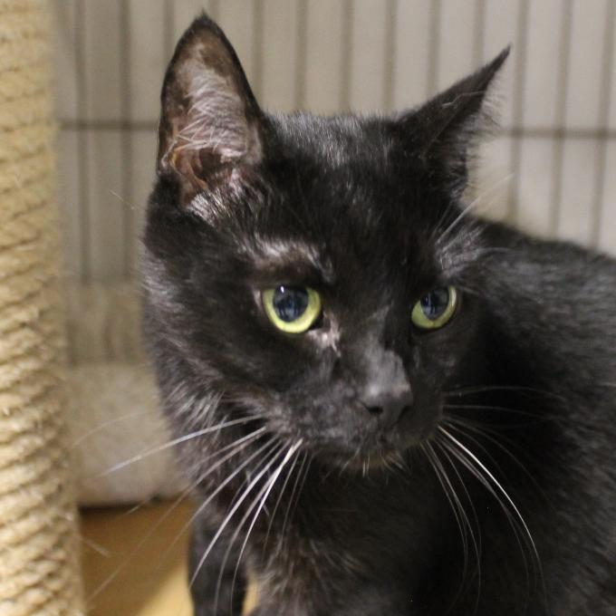 Vandejsa je drobná černá kočička, kterou v útulku zanechala bývalá klientka psychiatrické nemocnice. Je to starší kočička, pravděpodobně je jí okolo jedenácti let. Je milá a přátelská.