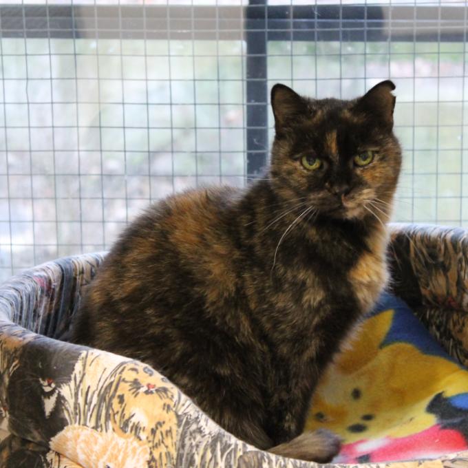 Želva je starší želvovinová kočička. Želva je klidná a nenáročná kočka, která většinu dne odpočívá a pozoruje ptactvo za oknem, pohladit se nechá, ale lidskou pozornost přímo nevyhledává.